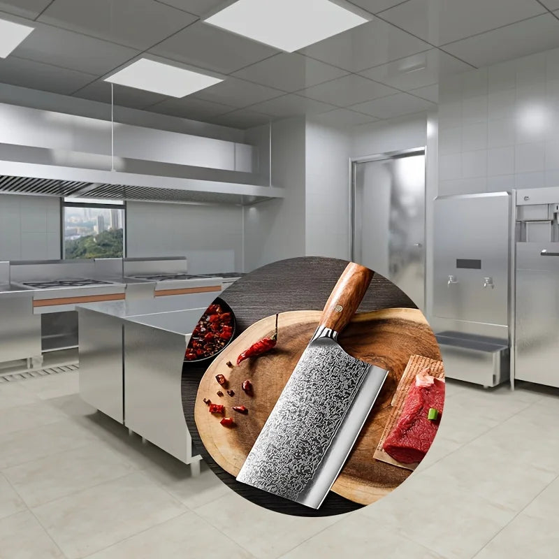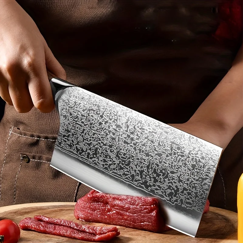 1pc Damascus Japan Kitchen Knife, Professional Japanese VG-10 Steel Meat Cleaver Knife for Meat Cutting, Sharp Hand Forged Meat