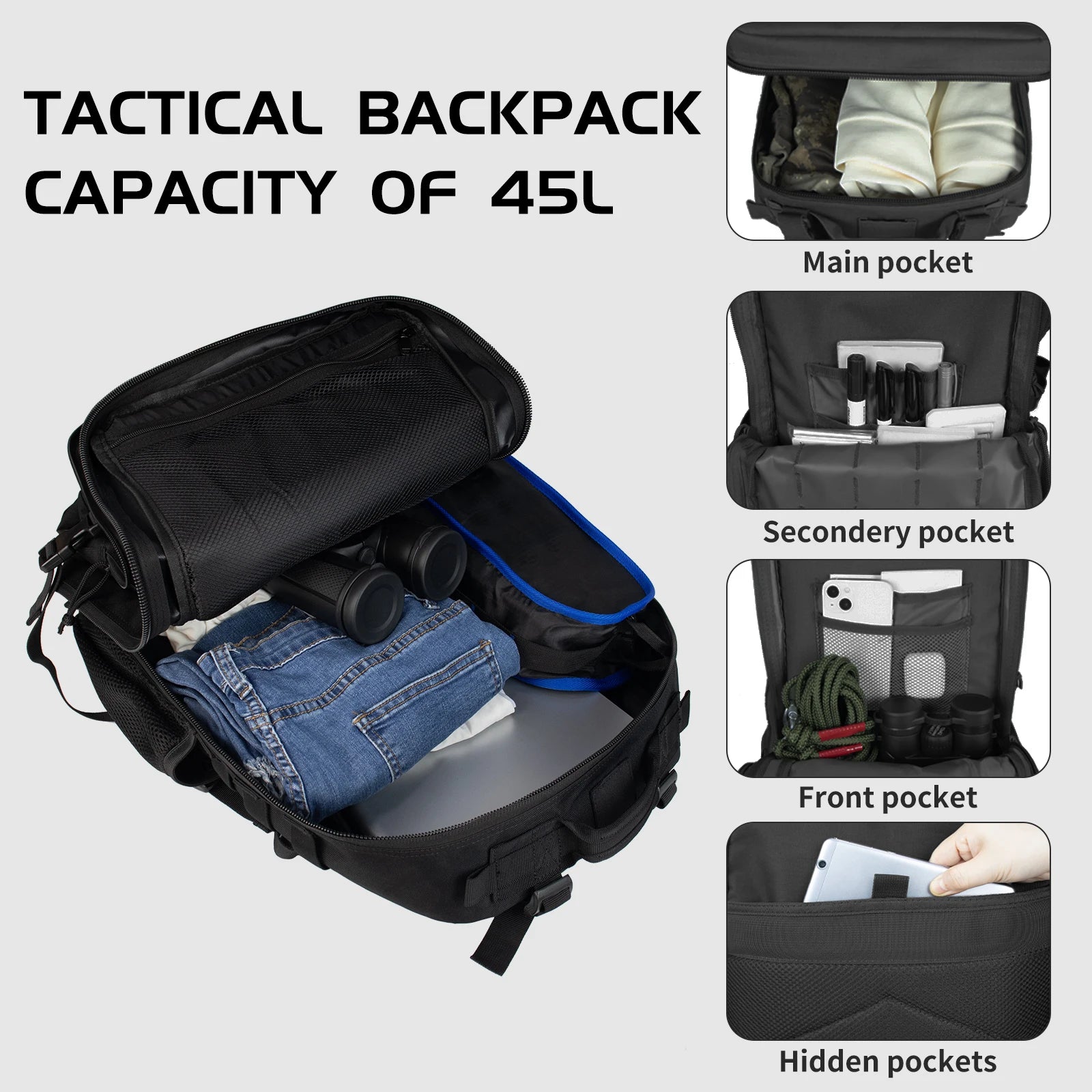 45L Military Tactical Backpack 3 Day Molle Assault Pack Large Army Bug Out Bag Rucksack Daypack for Men Outdoor Hiking Army Camp