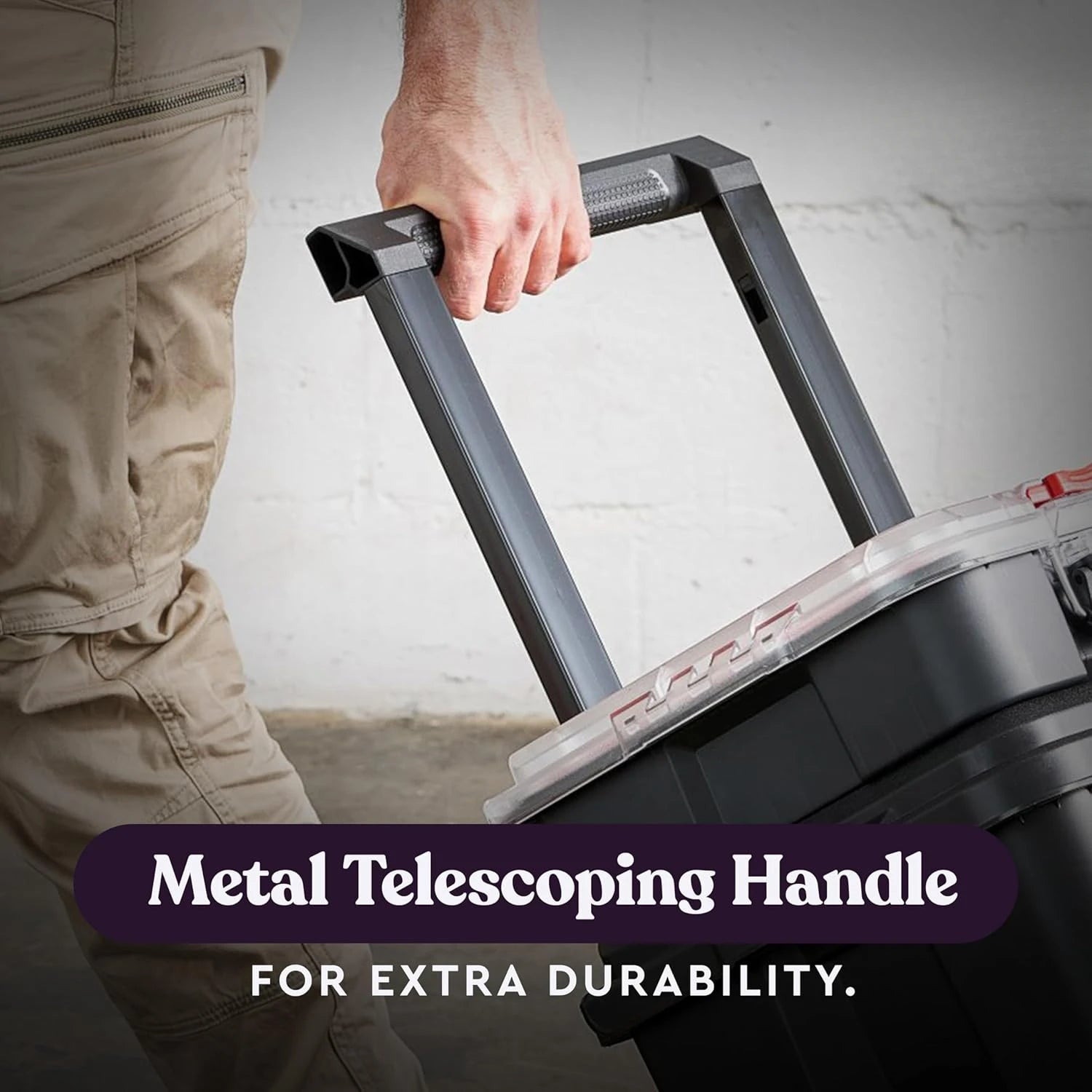 - Metal telescopic handle with 7” durable wheels and side grips for maximum mobility to your next project or jobsite