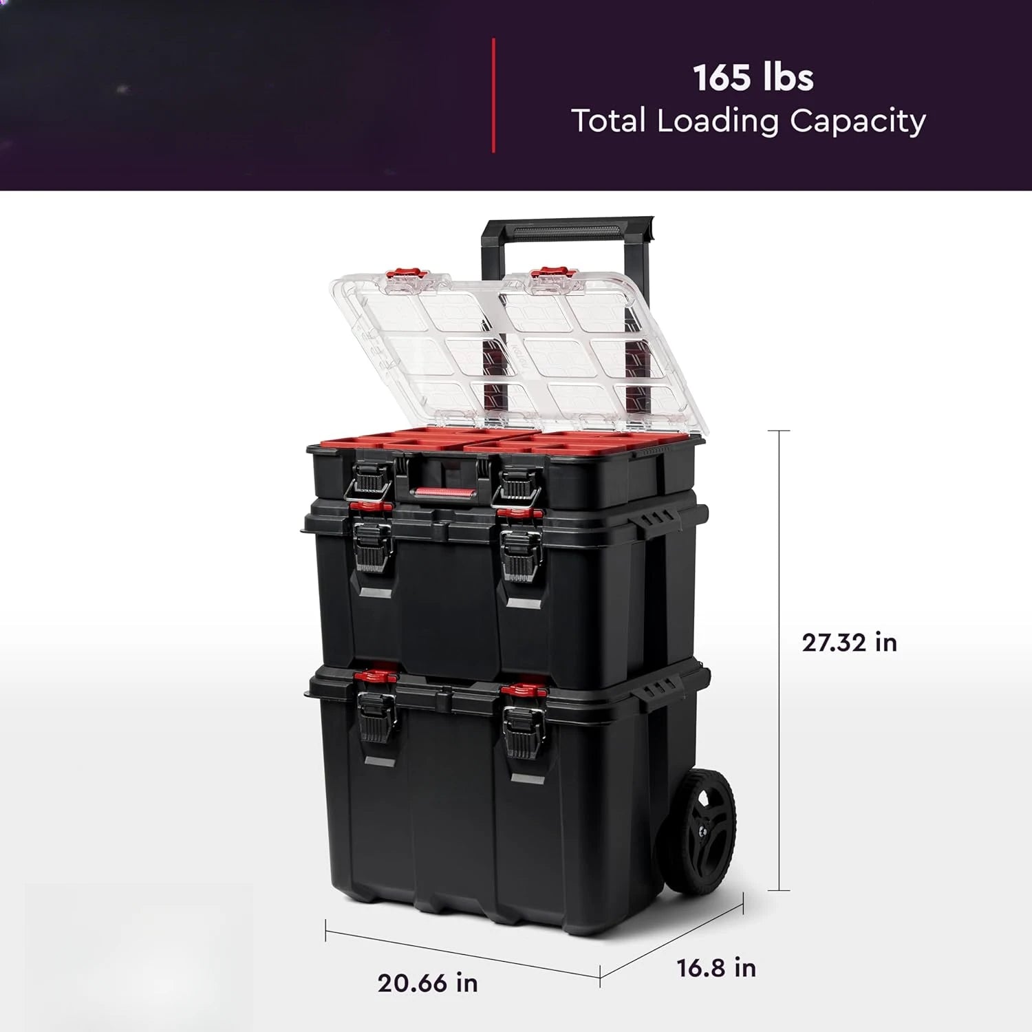 - Features a transparent polycarbonate lid on the small parts organizer