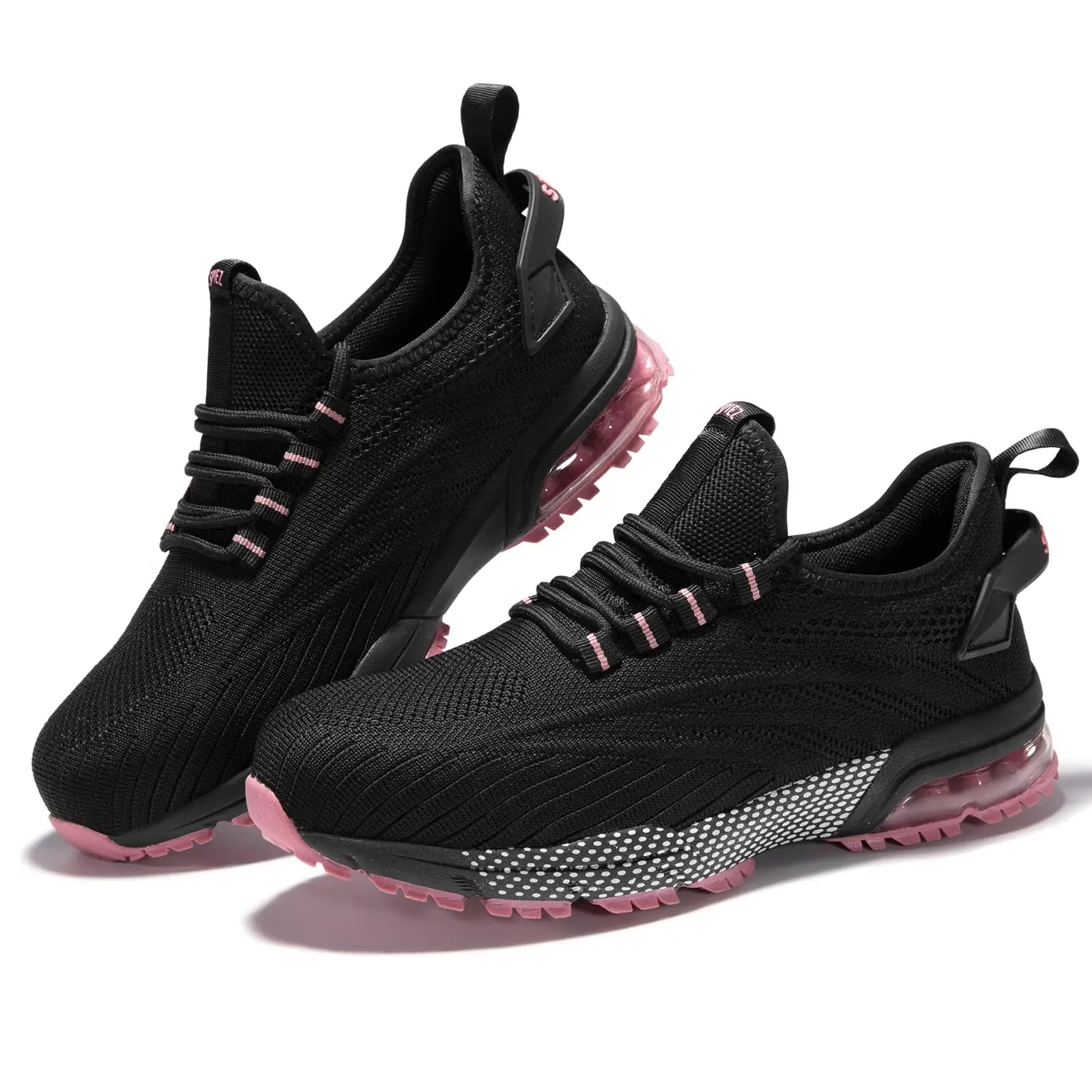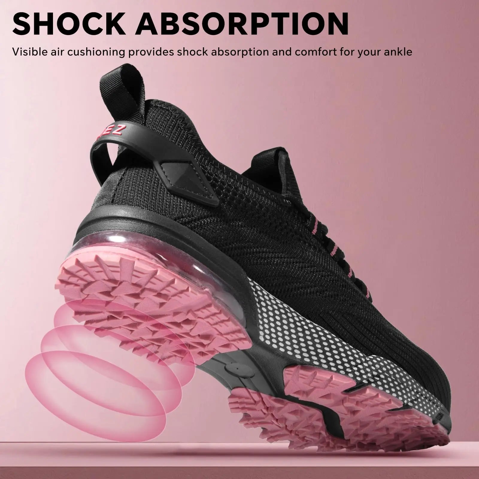 SPIEZ Safety Shoes for Women,Lightweight Non Slip Work Shoes,Air Cushion Safety Sneakers for Work and Daily Wear Black/Pink